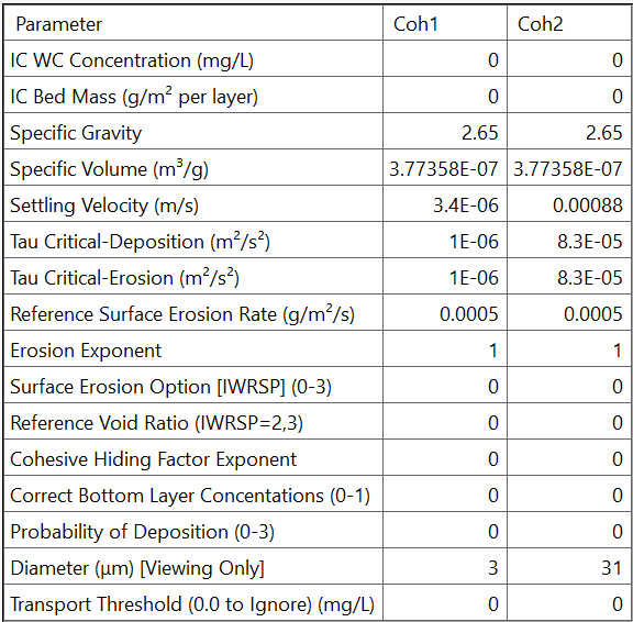 Table 1. Non-Cohesive sediment parametrization